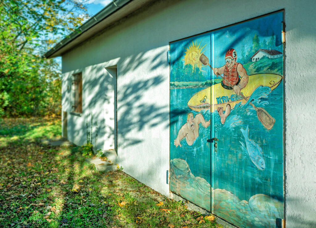 Das Bootshaus der Naturfreundeortsgruppe Westend-Augsburg e.V. wurde von den Mitgliedern in Eigenleistung erbaut. Ursprünglich als Lagerplatz für die Boote und Ausrüstung der Mitglieder gedacht, wurde es alsbald um einen Jugendraum, dann etwas später um einen Versammlungsraum ergänzt.